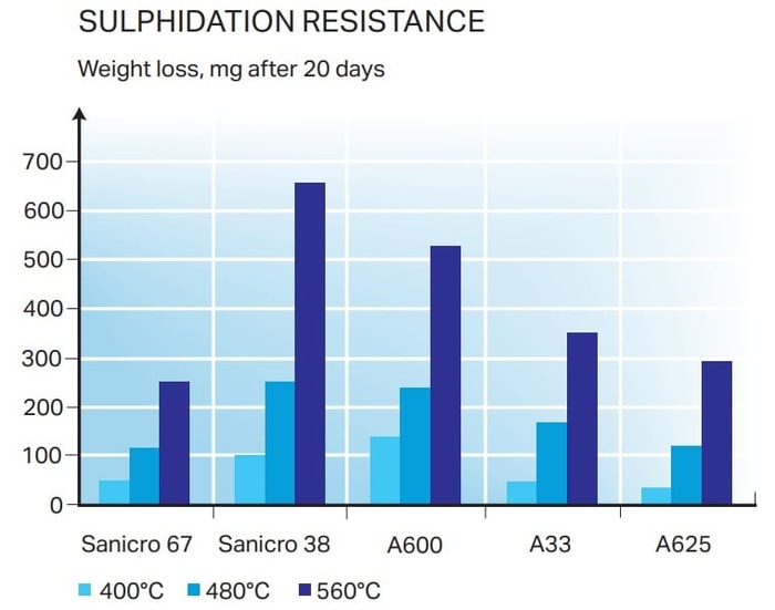 Figure 3. Sanicro® 67 has good resistance to sulphidation in standard test. By courtesy of FPInnovations/Paprican