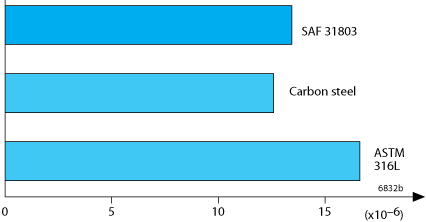 SAF™ 31803 has a far lower coefficient of thermal expansion than austenitic stainless steels and can therefore offer certain design advantages.