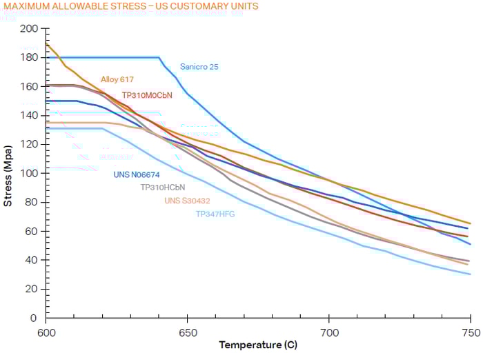 The graph below shows the creep strength of Sanicro® 25 compared with other materials.