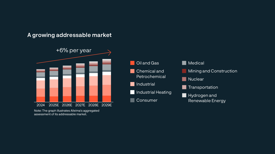 Marknaden för industriella ugnar består av både gaseldade och elektriska ugnar, där Alleima verkar inom nischen värmelösningar för elektriska ugnar. Andelen elektriska ugnar utgör idag 25 % av marknaden och förväntas växa som andel, drivet av energiomställningen. Marknadens storlek uppskattas idag till cirka 9 miljarder kronor i årlig omsättning.