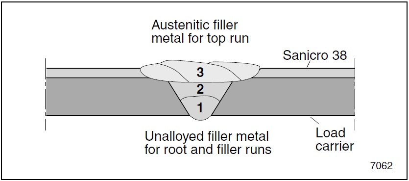 1) A higher heat input may be applied for the root- and filler runs, if the stainless peel off is increased.