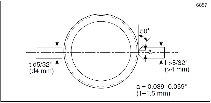 Butt welding of composite tubes must be carried out in such a manner that dilution of the components is kept under control. The melting point of the bonding zone is lower than the melting point of the stainless steel, and, if the bonding zone is exposed to too much heat, a local melting may occur. Therefore, in order to obtain the optimum corrosion resistance and mechanical properties of the welded joints, the following edge preparation (fig. 2) and welding sequences (fig. 3) are recommended. See table 1.